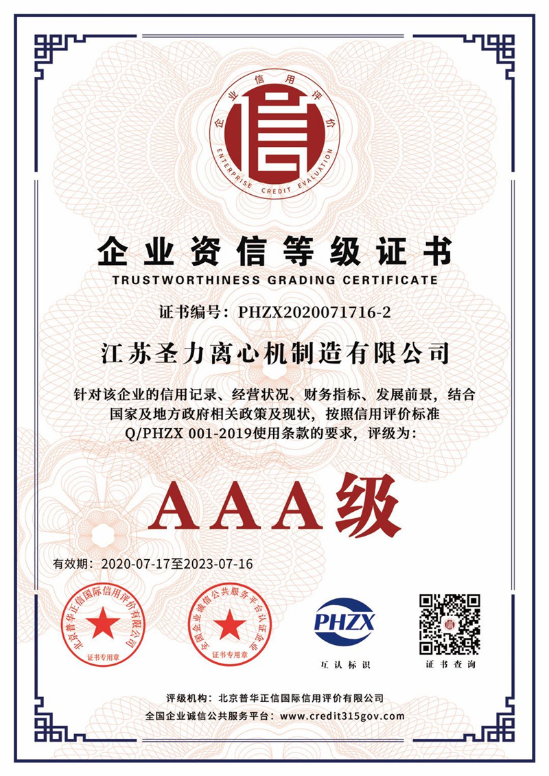 江蘇圣力離心機(jī)制造有限公司是國內(nèi)分離機(jī)械行業(yè)中主要的離心機(jī)生產(chǎn)企業(yè),對離心機(jī)的研究、設(shè)計(jì)、制造有多年的歷史,擁有齊全的設(shè)備、完善的檢測手段。公司已通過IS09000國際質(zhì)量體系認(rèn)證、ISO14001環(huán)境管理體系認(rèn)證、ISO45001:2018職業(yè)健康安全管理體系認(rèn)證和CE認(rèn)證,是江蘇省高新技術(shù)企業(yè),曾榮獲國家和地方多項(xiàng)榮譽(yù)稱號。